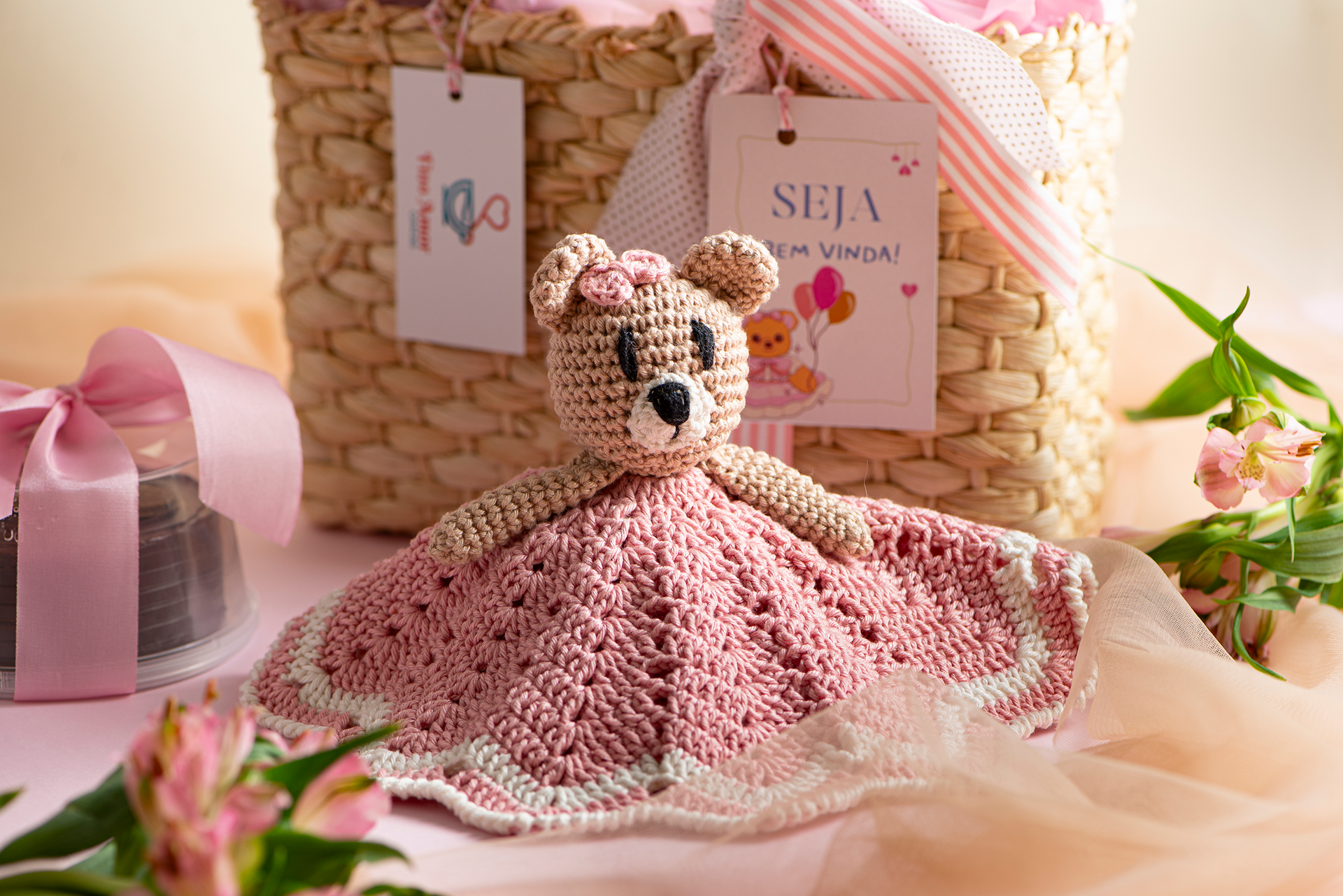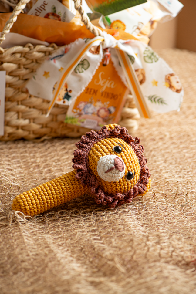 Você pode personalizar ainda mais o amigurumi, acrescentando itens exclusivos como canecas, balões, quadrinhos, flores ou outros itens de sua escolha, de acordo com a disponibilidade.